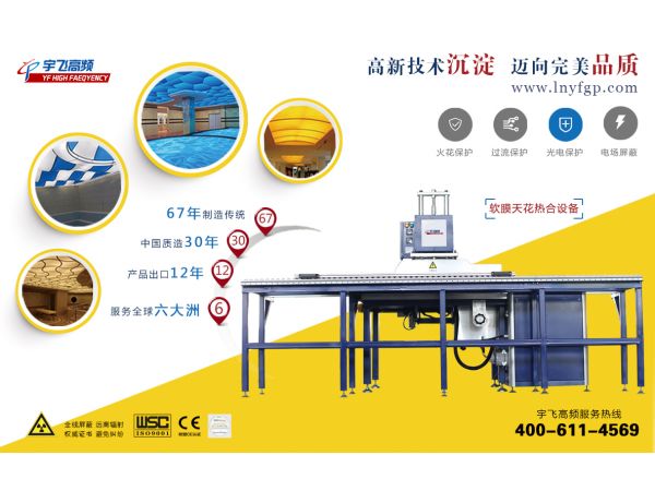 宇飞膜材料专用高周波焊接机,专业用于建筑棚膜、快速门、气艇及PVC/TPU等材料的熔接热合。